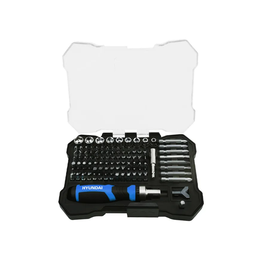105 pcs : 1PC ratchet screwdriver 1PC 60mm bits holder 1PC Y-type bits 1PC adaptor 8PCS 6.3*50mm CRV bits 9PCS sockets: 5-6-7-8-9-10-11-12-13mm 84PCS CRV bits(6.3*25mm)